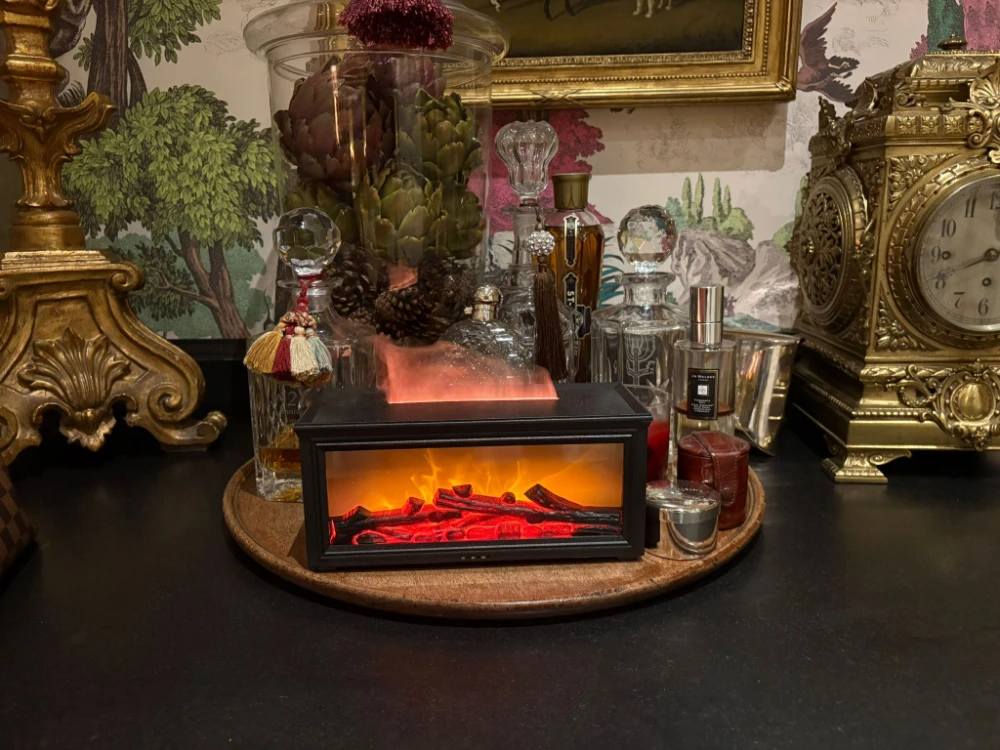 A sleek, modern diffuser with a realistic flame effect and quiet operation. Perfect for creating a calming atmosphere in any room.